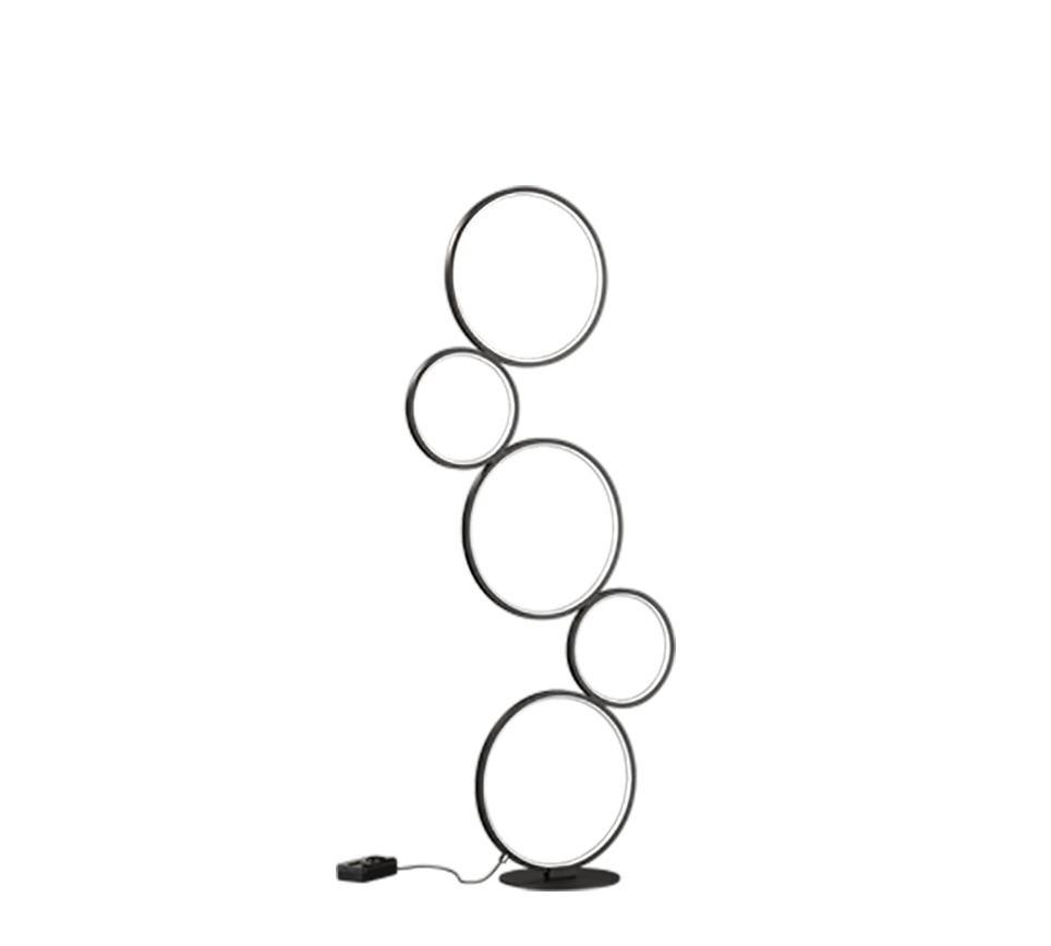 Stojací lampa RONDO je díky svým pěti naskládaným kruhům různých průměrů skutečným poutačem pozornosti. Stojací...
