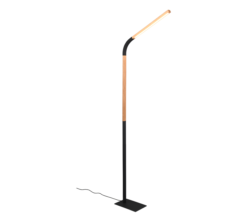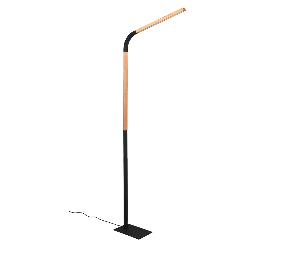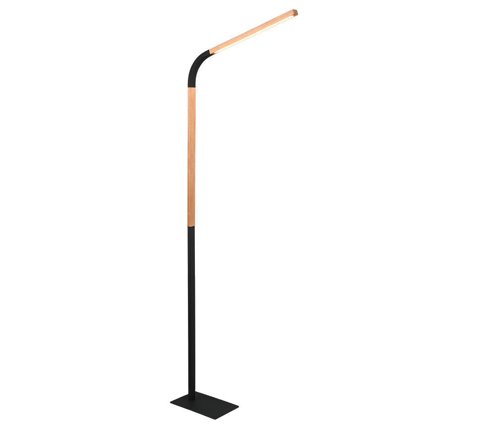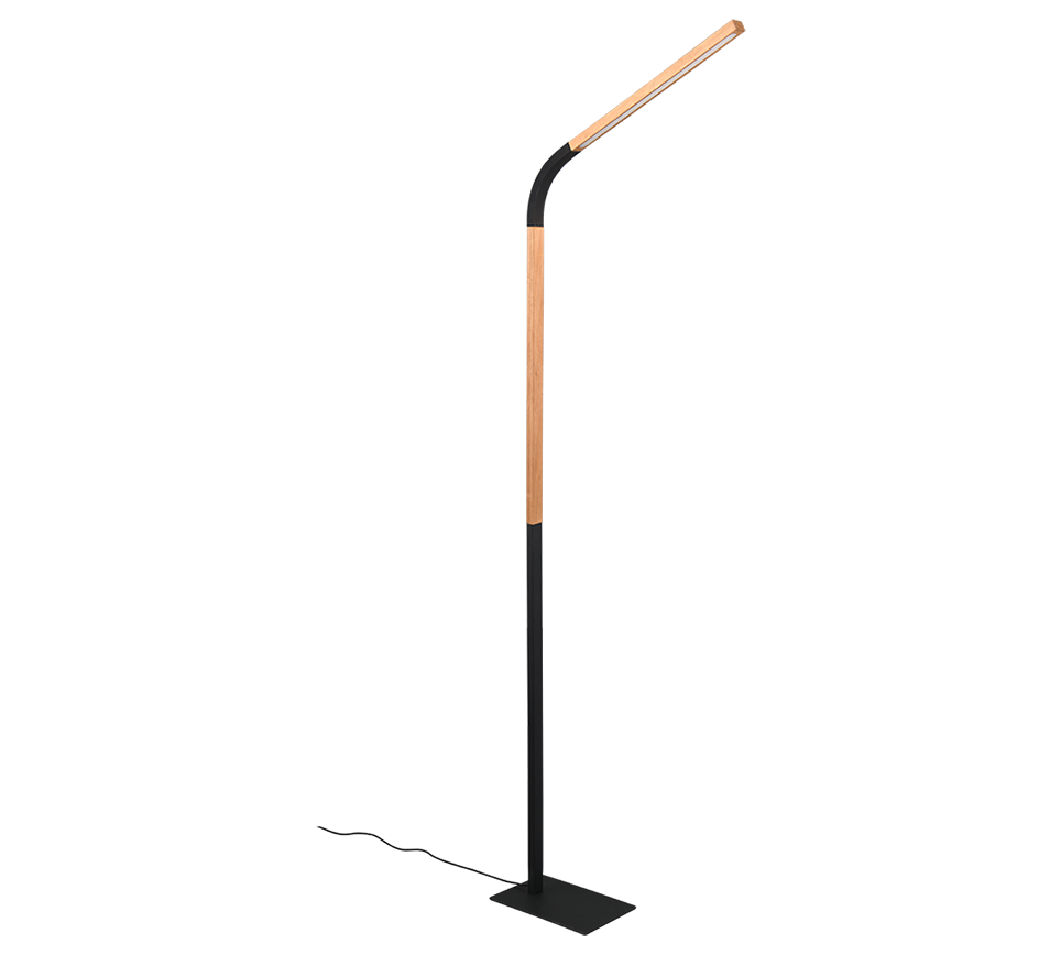 Relaxing with a book or tablet after work - this requires a harmonious lighting ambience: With its integrated SWITCH dimmer, the NORRIS floor lamp offers a solution that is easy on the eyes, as the brightness can be adjusted in three levels (100%, 50% and 25%) as required. Thanks to the flexible arm of the NORRIS, the light can be directed individually, making the lamp the perfect choice for an evening break with a tablet or favourite book. Place the floor lamp next to or behind the sofa and enjoy your cosy reading corner! The purist silhouette of the light and the successful combination of natural wood and black matt metal are impressive in every respect. The luminaire also features modern LED technology, which is characterised by high light quality and energy efficiency. Compared to conventional halogen light sources, up to 80% of energy costs can be saved. LED light sources also have a long service life, produce less heat and protect the environment.