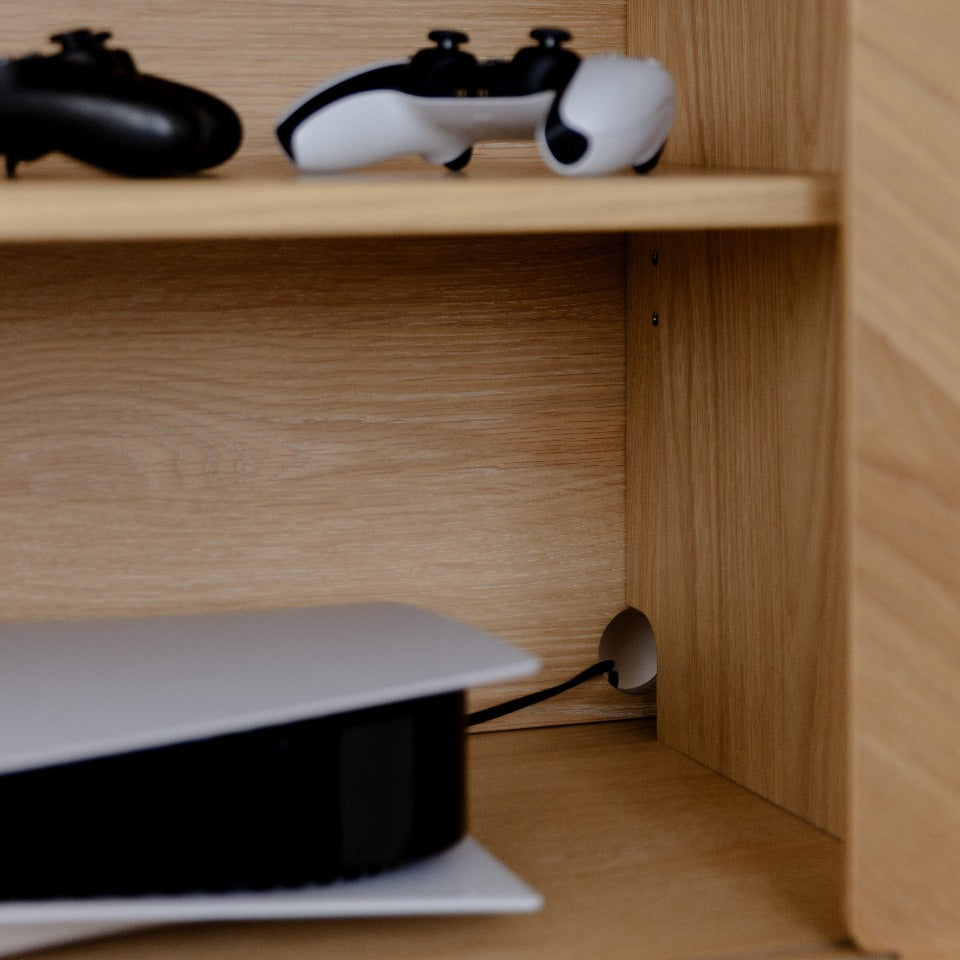 S dvířky příborníku z vroubkovaného skla nebo dubového dřeva si můžete přizpůsobit a pozvednout svůj interiér. Dvířka lze kombinovat a sladit tak, aby se dosáhlo vzhledu, který se hodí do každého prostředí. Dřevěné dvířka mají dvě strany: Jedna strana s diagonálním dýhovaným panelem pro jedinečný vzhled a druhá strana s vertikální dýhou pro nadčasový vzhled.