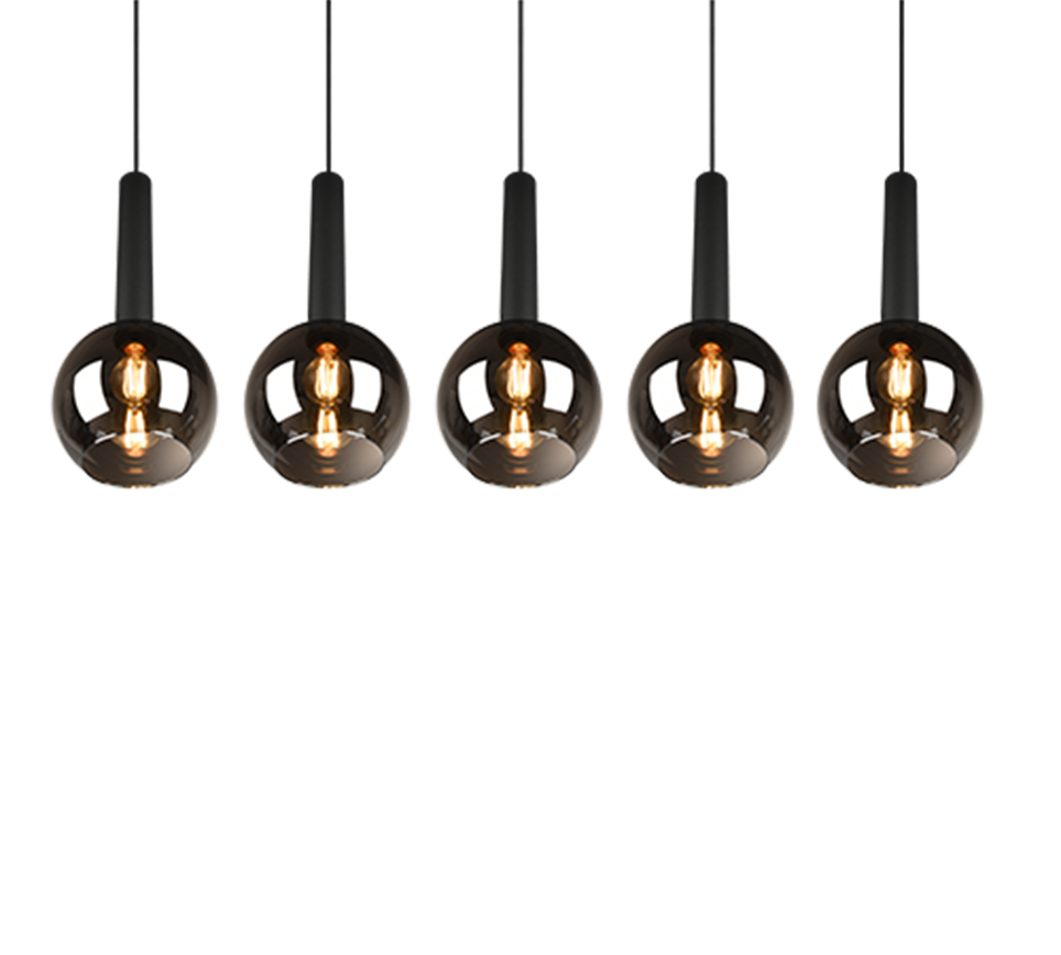 Nadčasové, jednoduché, a přesto osobité. Moderní závěsné svítidlo CLAYTON přitahuje pozornost kombinací elegantních skleněných stínidel a tmavého kovu. Kulatý tvar pěti skleněných stínidel vyzařuje světlo do okolí jedinečným způsobem a vytváří útulnou atmosféru. Umístěné nad stůl v obývacím pokoji nebo centrálně nad jídelní stůl, světlo je ideálně prezentované a vytváří nová oblíbená místa ve vaší domácnosti. Chromované sklo v kombinaci s matným černým kovem se snadno přizpůsobí jakémukoli stylu a barevnému schématu interiéru a snadno se kombinuje. Pro energeticky úsporné osvětlení doporučujeme použít LED žárovky. Ty jsou optimální alternativou ke běžným halogenovým žárovkám a nabízejí vysokou kvalitu světla a úsporu energie až 80 %. LED žárovky navíc vynikají dlouhou životností a nízkým zahříváním a zároveň jsou šetrné k životnímu prostředí.