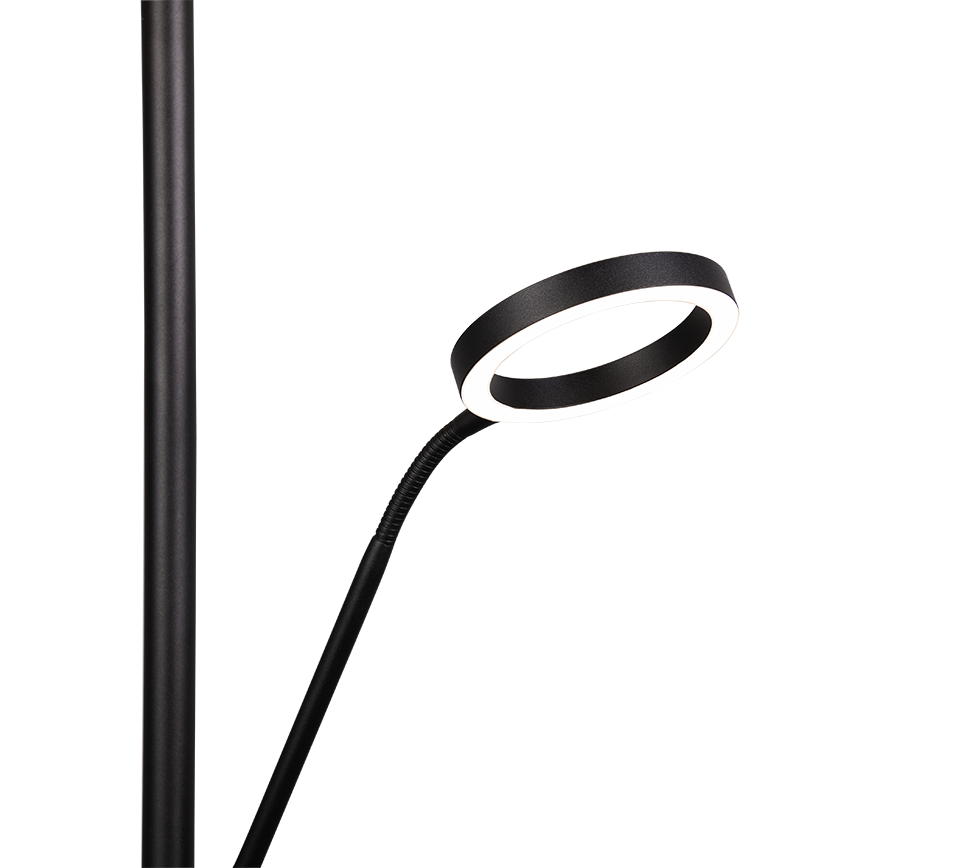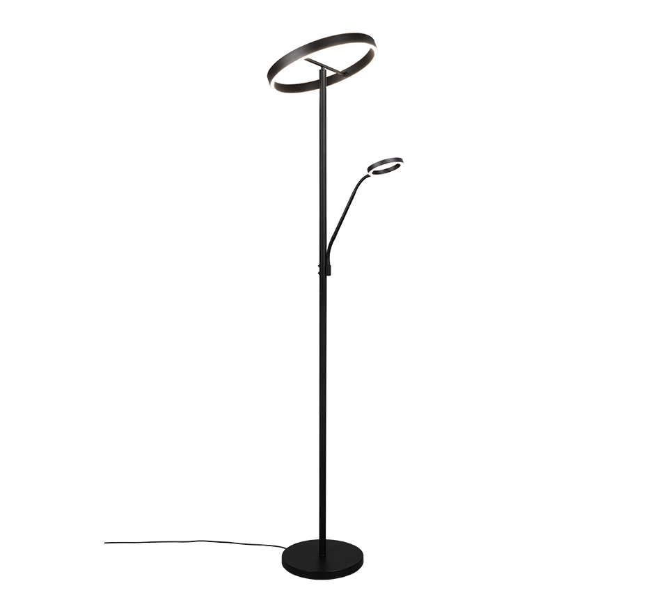 Stojací lampa WILLIS zaujme svým elegantním designem a sofistikovanou funkčností. Prstencová světelná hlava a flexibilní čtecí rameno nabízejí širokou škálu možností osvětlení, které lze přizpůsobit individuálním požadavkům. Oba světelné zdroje lze zapínat samostatně a individuálně nastavit barvu světla a jas. To umožňuje přesné ovládání osvětlení, ať už pro útulné večery na gauči nebo jako decentní osvětlení pozadí. Moderní vzhled v matné černé barvě dodává světlu nadčasový vzhled, který se bez námahy začlení do různých stylů interiéru. Svítidlo je také vybaveno moderní LED technologií, která se vyznačuje vysokou kvalitou světla a energetickou účinností. Ve srovnání s běžnými halogenovými světelnými zdroji lze ušetřit až 80 % nákladů na energii. LED světelné zdroje mají také dlouhou životnost, produkují méně tepla a chrání životní prostředí.