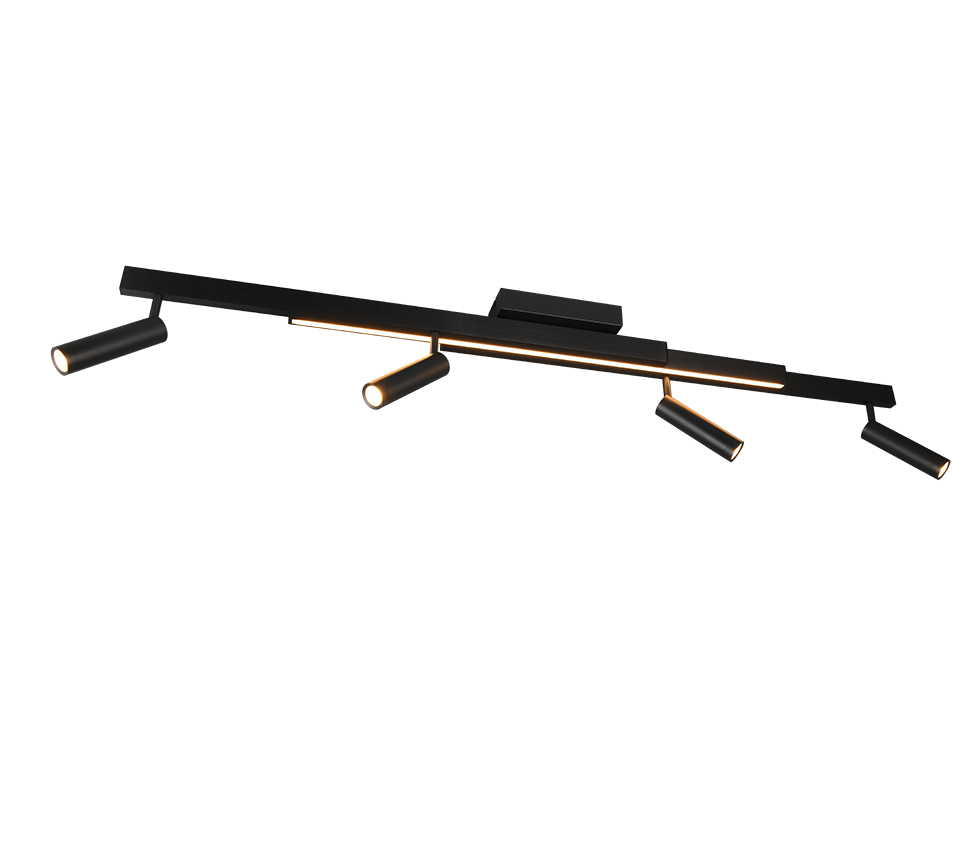 Všestranné osvětlení ve stylovém designu - Stropní svítidlo ZENO zaujme třemi rovnoběžnými, protáhlými prvky, které lze snadno od sebe oddělit a přizpůsobit tak světlo vašim potřebám a místnosti. Čtyři pohyblivé bodové světlomety navíc nabízejí další možnosti cíleného osvětlení vašeho obytného prostoru. Dodávané dálkové ovládání umožňuje pohodlné ovládání barvy a jasu světla na dálku. Černý matný kov dodává světlu elegantní a moderní vzhled. Svítidlo je také vybaveno moderní LED technologií, která se vyznačuje vysokou kvalitou světla a energetickou účinností. Ve srovnání s běžnými halogenovými světelnými zdroji lze ušetřit až 80 % nákladů na energii. LED světelné zdroje mají také dlouhou životnost, produkují méně tepla a chrání životní prostředí.