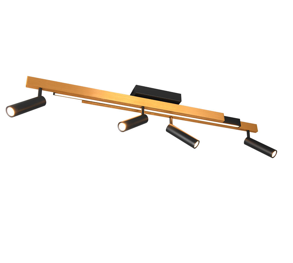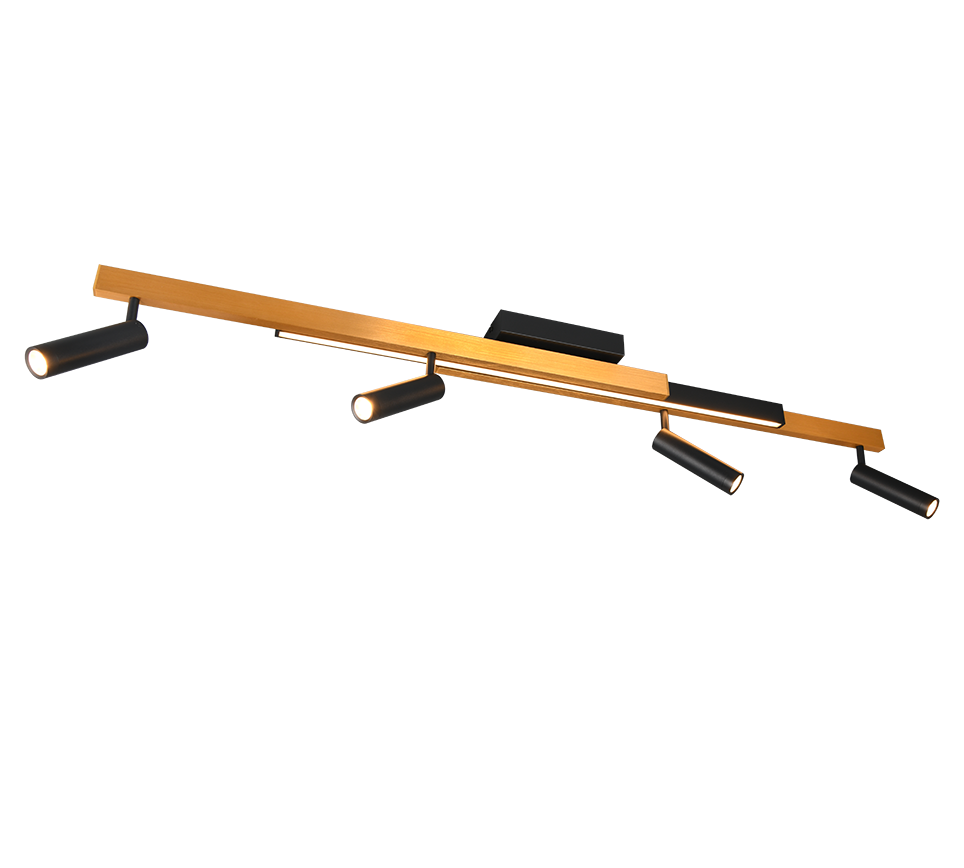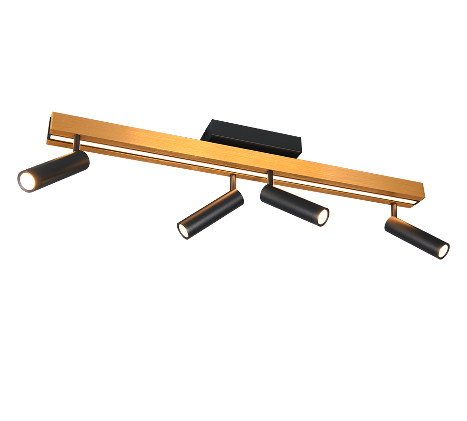 Všestranné osvětlení ve stylovém designu - Stropní svítidlo ZENO zaujme třemi rovnoběžnými, protáhlými prvky, které lze snadno od sebe oddělit a přizpůsobit tak světlo vašim potřebám a místnosti. Čtyři pohyblivé bodové světlomety navíc nabízejí další možnosti cíleného osvětlení vašeho obytného prostoru. Dodávané dálkové ovládání umožňuje pohodlné ovládání barvy a jasu světla na dálku. Kombinace matné mosazi a matného černého kovu dodává světlu elegantní a moderní vzhled. Svítidlo je také vybaveno moderní LED technologií, která se vyznačuje vysokou kvalitou světla a energetickou účinností. Ve srovnání s běžnými halogenovými světelnými zdroji lze ušetřit až 80 % nákladů na energii. LED světelné zdroje mají také dlouhou životnost, produkují méně tepla a chrání životní prostředí.