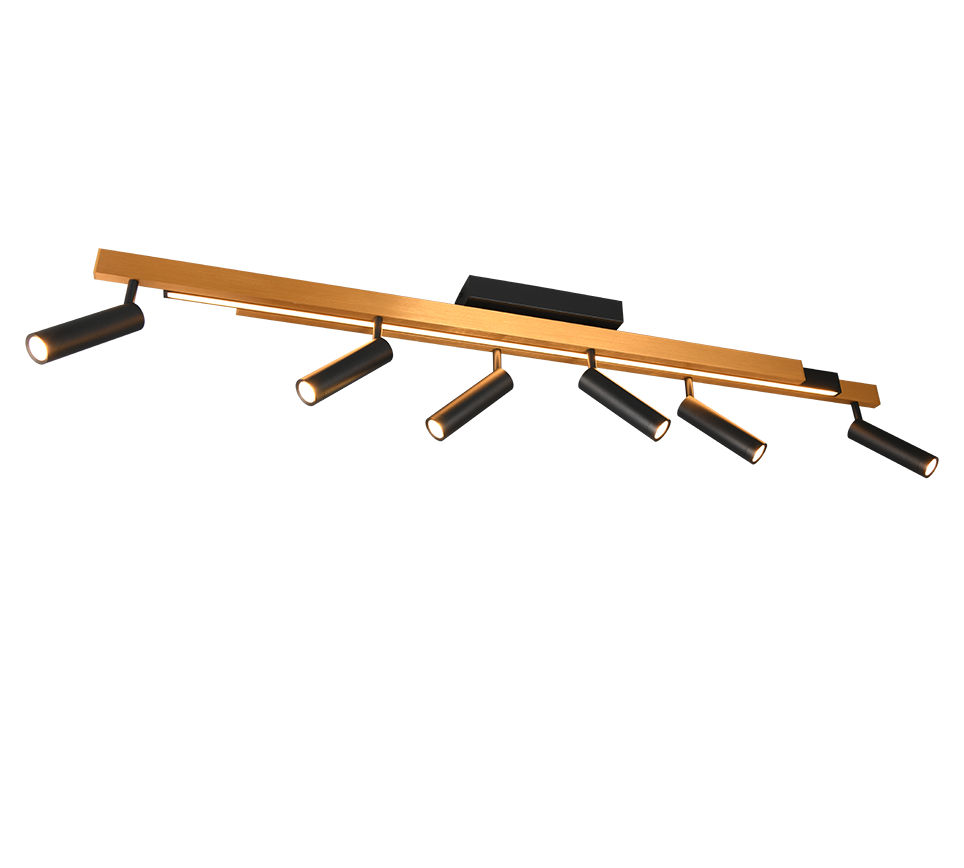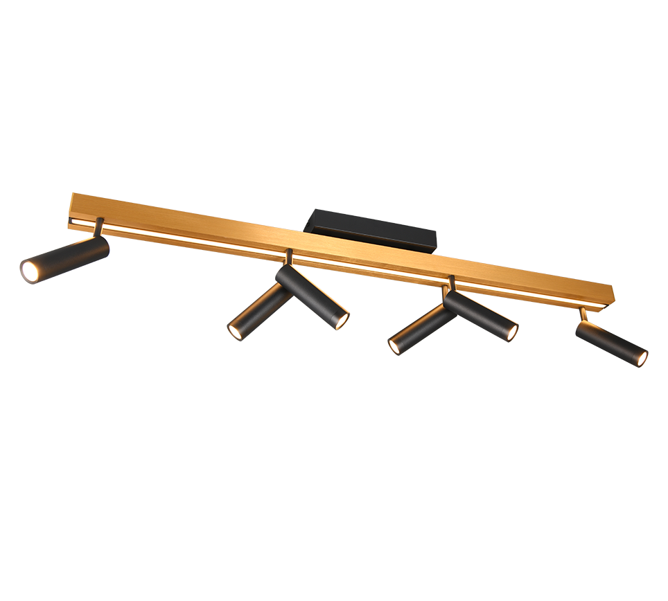 Všestranné osvětlení ve stylovém designu - Stropní svítidlo ZENO zaujme třemi rovnoběžnými, protáhlými prvky, které lze snadno od sebe oddělit a přizpůsobit tak světlo vašim potřebám a místnosti. Šest pohyblivých bodových světel navíc nabízí další možnosti cíleného osvětlení vašeho obytného prostoru. Dodávané dálkové ovládání umožňuje pohodlné ovládání barvy a jasu světla na dálku. Kombinace matné mosazi a matného černého kovu dodává světlu elegantní a moderní vzhled. Svítidlo je také vybaveno moderní LED technologií, která se vyznačuje vysokou kvalitou světla a energetickou účinností. Ve srovnání s běžnými halogenovými světelnými zdroji lze ušetřit až 80 % nákladů na energii. LED světelné zdroje mají také dlouhou životnost, produkují méně tepla a chrání životní prostředí.